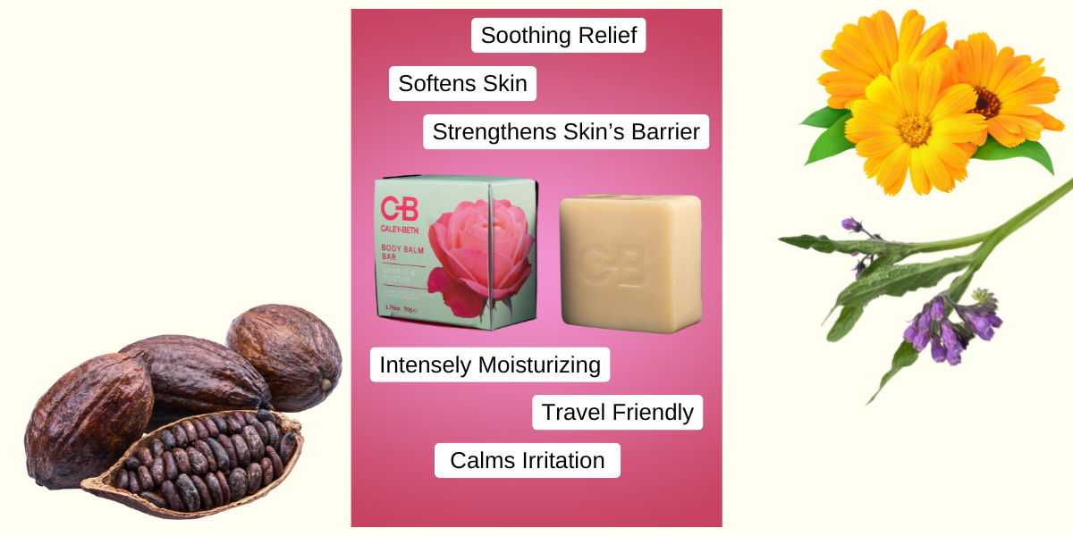 Experience soothing nourishment with the delicious aroma of cocoa. Our formula combines the benefits of calendula and rich cocoa butter to hydrate and calm, while comfrey ensures your skin stays moisturized and refreshed.